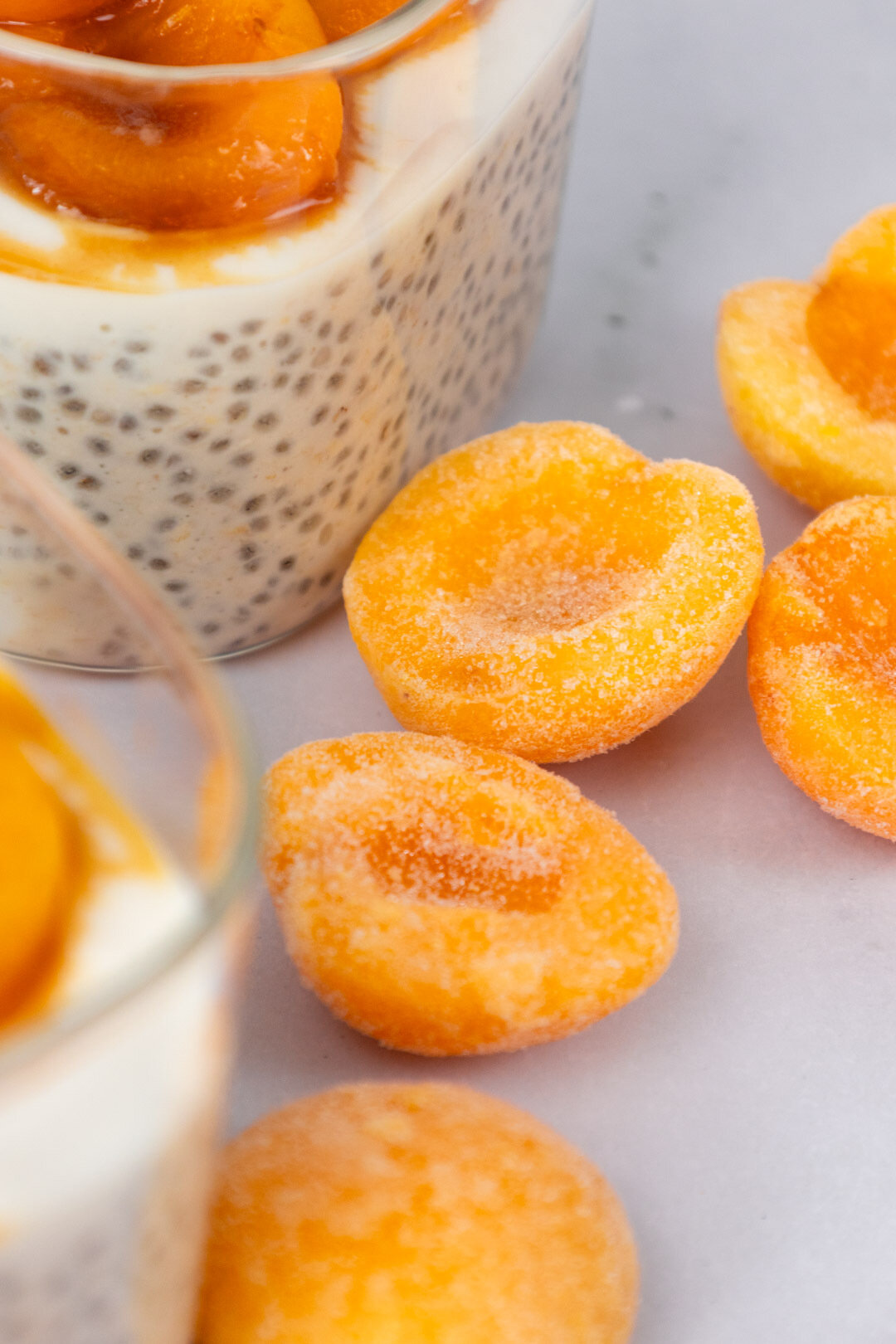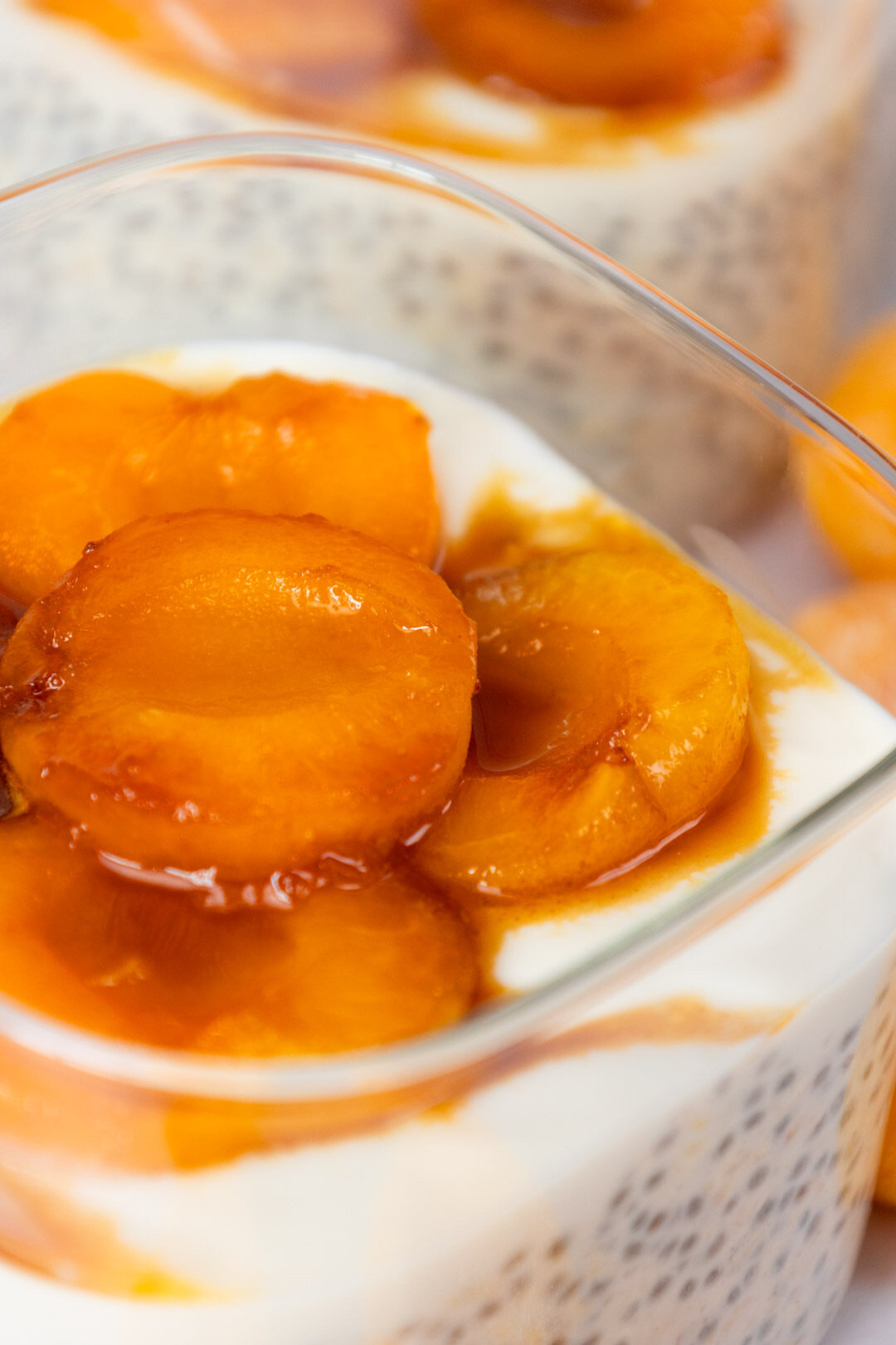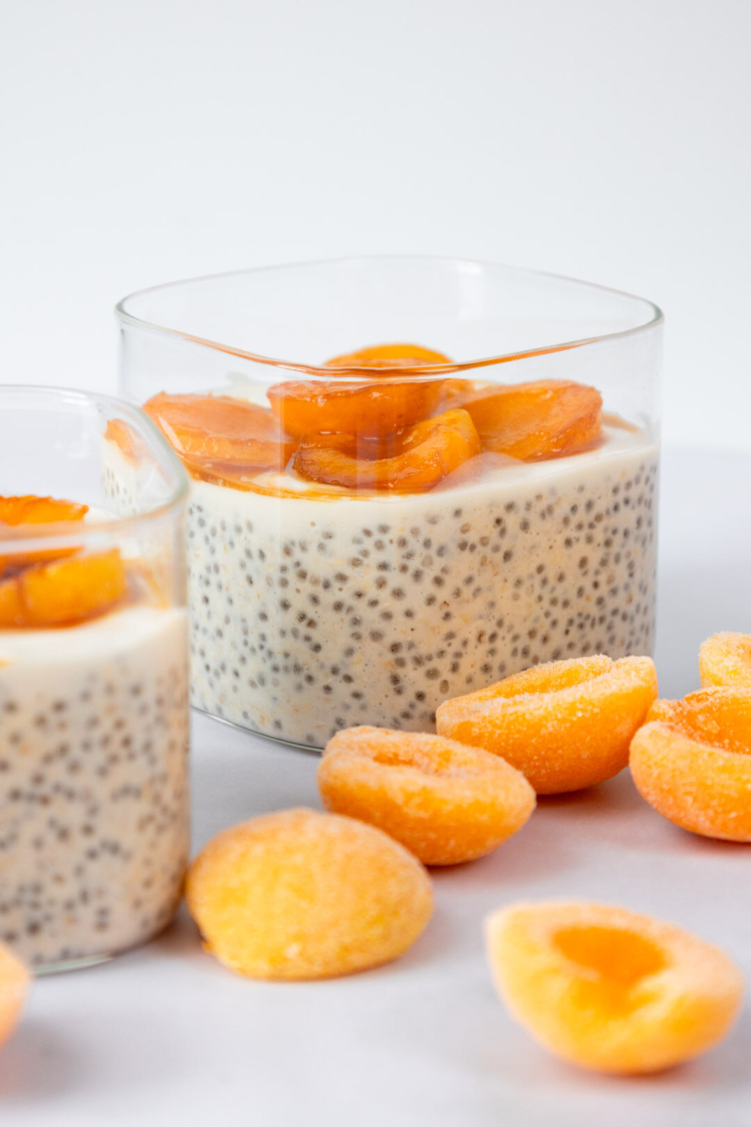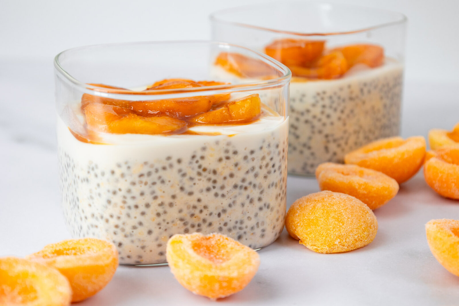 Creamy vanilla yoghurt and wholesome oats infused with chia seeds, chilled overnight for the perfect breakfast. Topped with caramelised apricot halves and salty roasted almond flakes for that sweet and salty taste.