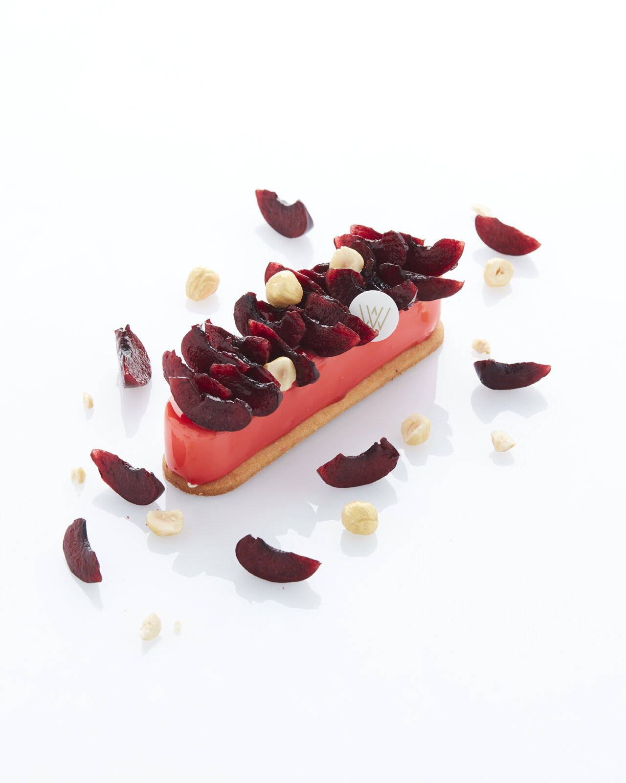 This exquisite creation features layers of luscious cherry crémeux, velvety milk chocolate mousse, and a tangy passion fruit ganache, creating a symphony of flavours and textures.
