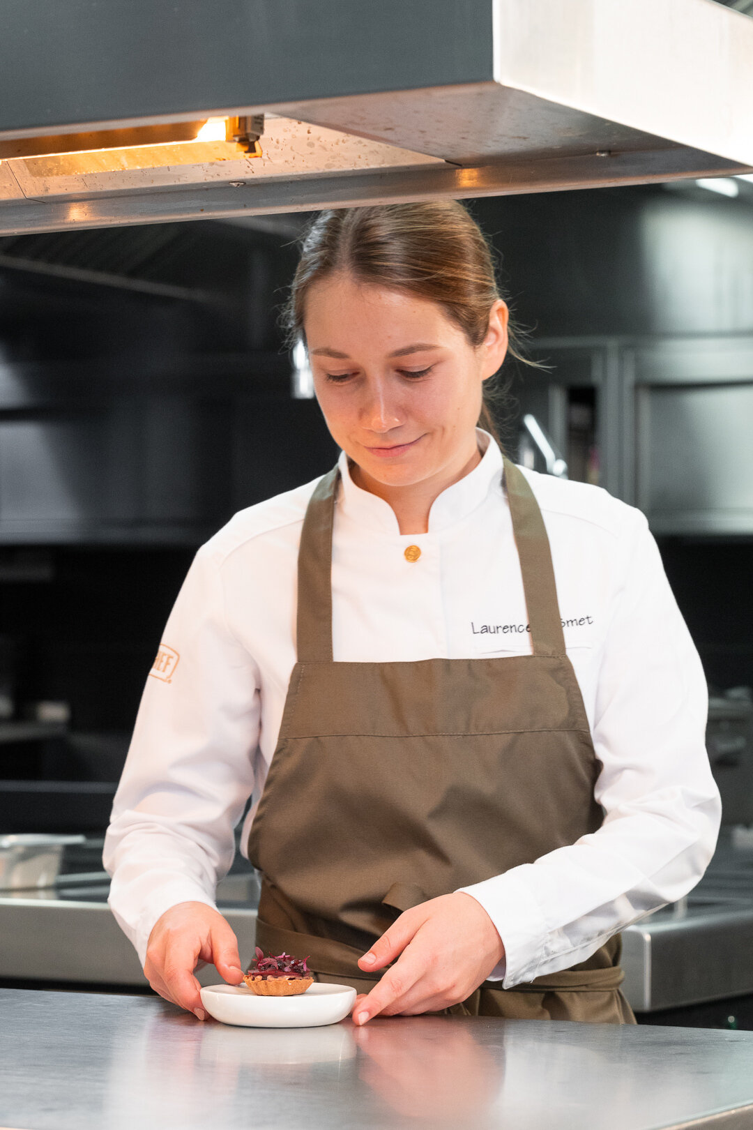 Defrost the pomegranate and cherries. Add some faux gras to the tartelette case. Arrange pomegranate seeds and sweet cherries on top of the gel. Pipe a layer of cherry gel over the fruit. Place a piece of cherry jelly on top. Sprinkle some cherry powder for a vibrant finish. Garnish with scarlet cress to complete the presentation.